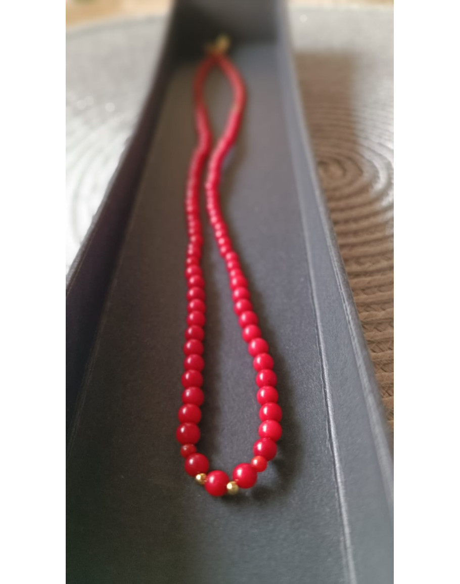 Uguns enerģijas kaklarota (uguns enerģija)izgatavots no sarkanām koraļļu krāsas pērlītēm 3 -4 mm.