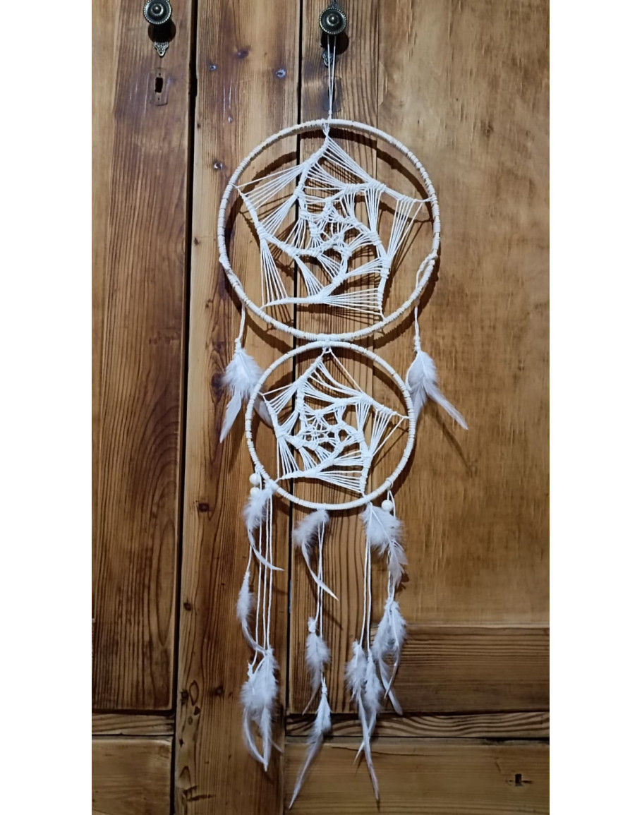 Sapņu ķērājs ir aizsardzības un harmonijas simbols, kas izgatavots ar rokām no dabīgiem materiāliem. Tas ir paredzēts, lai izfiltrētu negatīvos sapņus un izlaistu cauri tikai labus sapņus. Pateicoties unikālajam dizainam, sapņu ķērājs kļūs ne tikai par jaudīgu amuletu, bet arī par stilīgu Jūsu interjera rotājumu. Katra detaļa, no aušanas līdz spalvām, piešķir sapņu ķērājam personību un īpašu enerģiju. Šis amulets ir lieliski piemērots guļamistabā, bērnistabā vai kā īpaša dāvana.